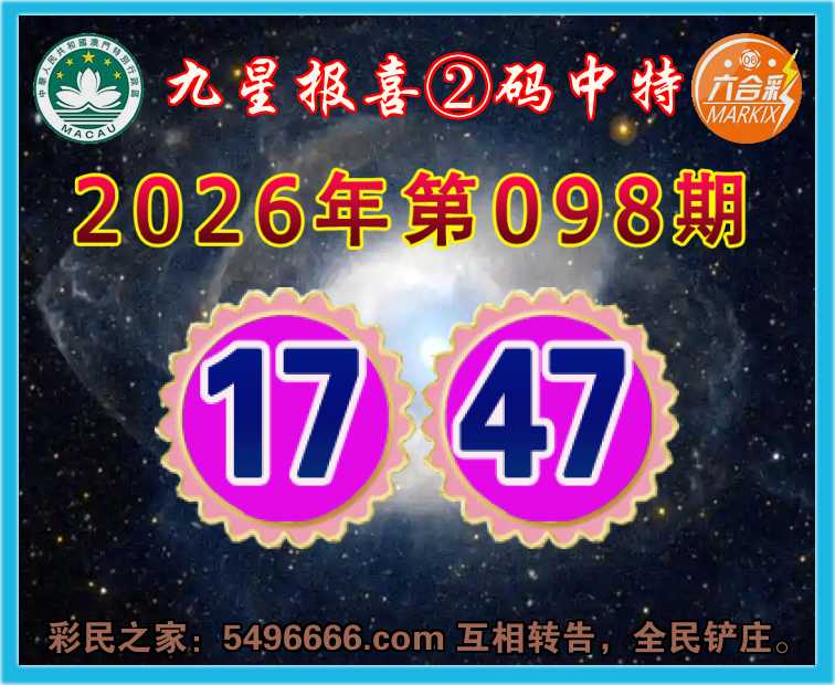 098期:《九星报喜》 ☘️②码中特☘️【17.47】开:00准