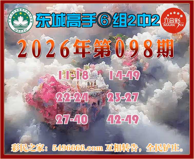 098期:【东城高手】〓⑥组2中2〓精准爆料★