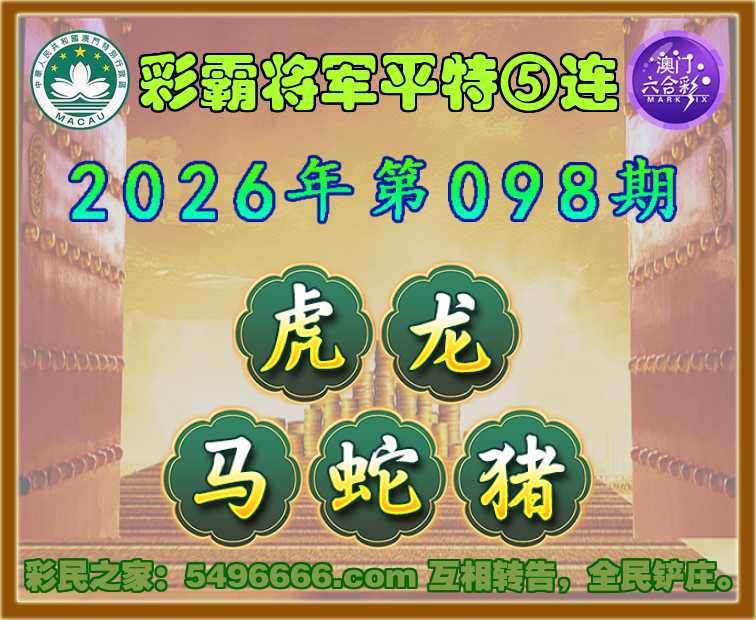 098期:『彩霸将军』 🍁平特⑤连🍁【虎龙马蛇猪】开:00准