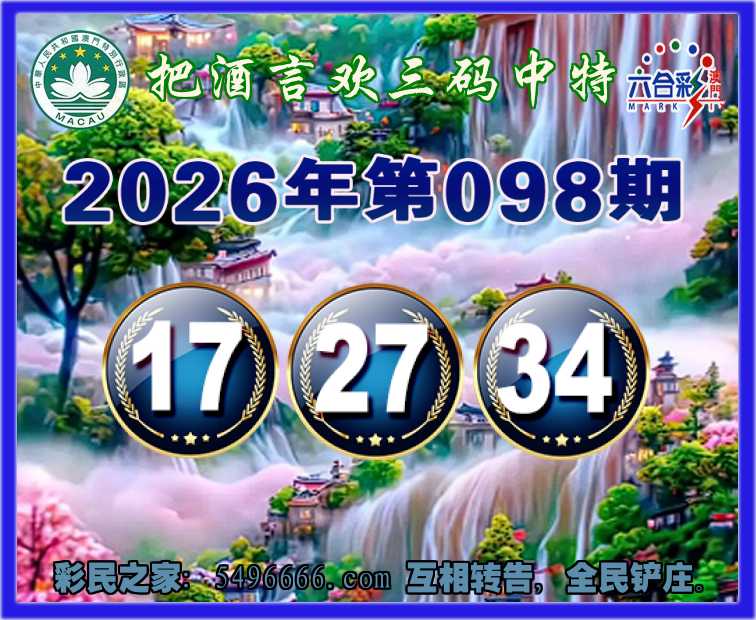 098期:《把酒言欢》 🏵️三码中特🏵️【17.27.34】开:00准