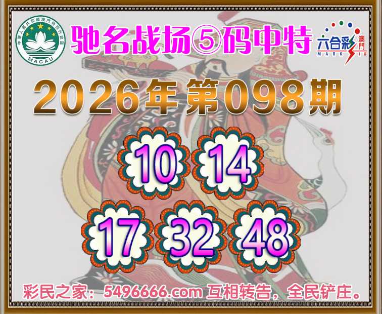 098期:【驰名战场】 🪢⑤码中特🪢【10.14.17.32.48】开:00准