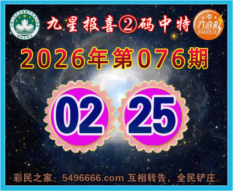 076期:《九星报喜》 ☘️②码中特☘️【02.25】开:02