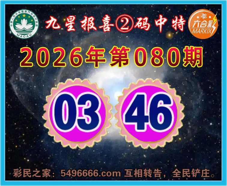 080期:《九星报喜》 ☘️②码中特☘️【03.46】开:03