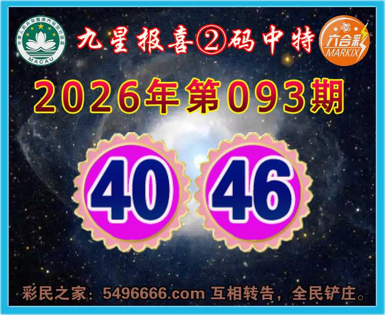 093期:《九星报喜》 ☘️②码中特☘️【40.46】开:40