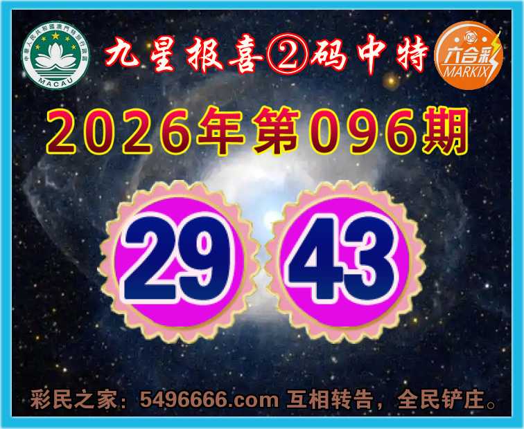 096期:《九星报喜》 ☘️②码中特☘️【29.43】开:43