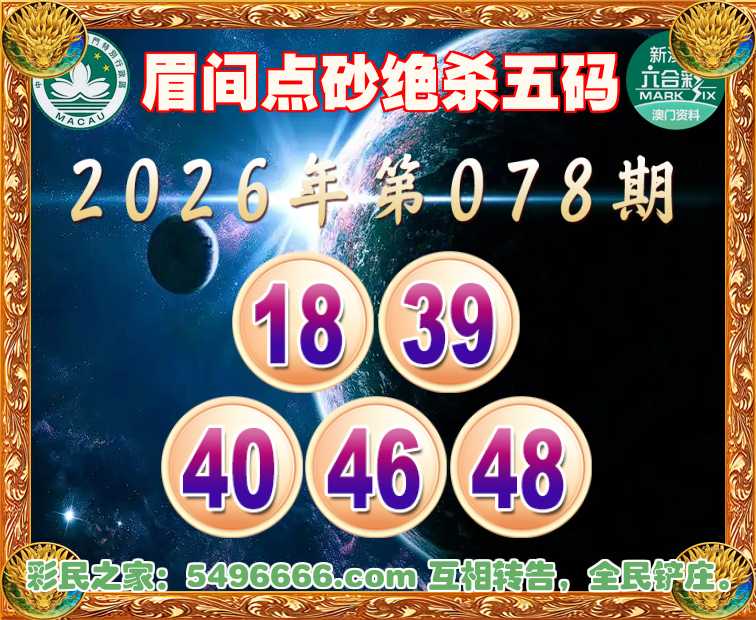 078期:【眉间点砂】 👉绝杀五码👉【18.39.40.46.48】开:鸡46