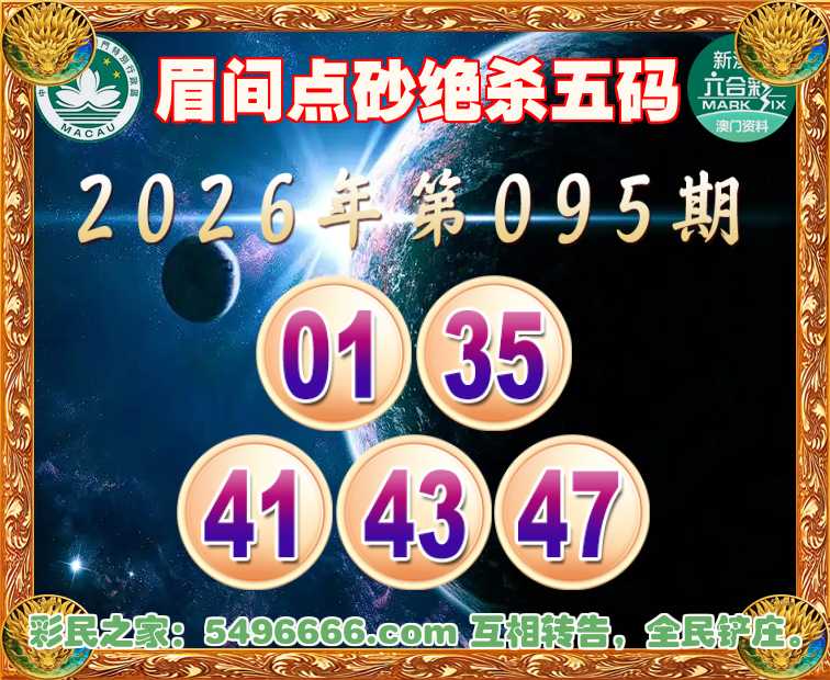 095期:【眉间点砂】 👉绝杀五码👉【01.35.41.43.47】开:猴35