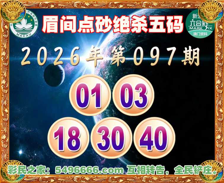 097期:【眉间点砂】 👉绝杀五码👉【01.03.18.30.40】开:猴11准实力见证