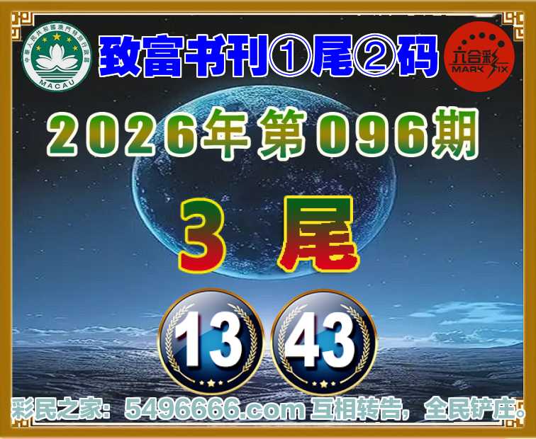 096期:『致富书刊』 🥩①尾②码🥩【3尾主:13.43】开:43