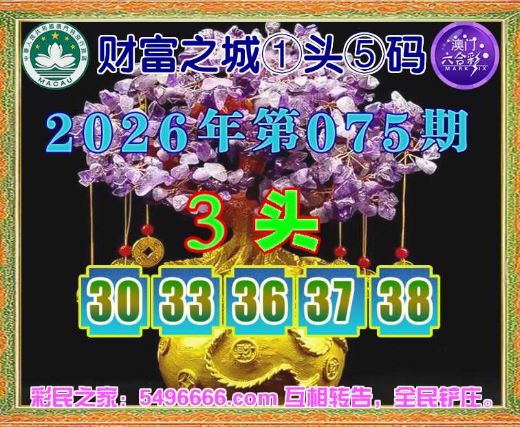 075期: 财富之城 🌲①头⑤码🌲【3头主:30.33.36.37.38】开:33