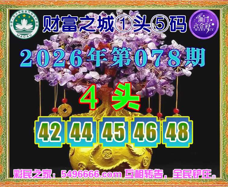 078期: 财富之城 🌲①头⑤码🌲【4头主:42.44.45.46.48】开:46