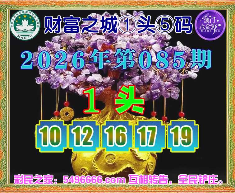 085期: 财富之城 🌲①头⑤码🌲【1头主:10.12.16.17.19】开:19