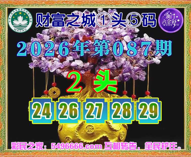 087期: 财富之城 🌲①头⑤码🌲【2头主:24.26.27.28.29】开:26