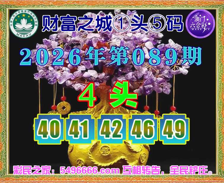 089期: 财富之城 🌲①头⑤码🌲【4头主:40.41.42.46.49】开:49