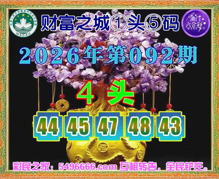 092期: 财富之城 🌲①头⑤码🌲【4头主:44.45.47.48.43】开:06