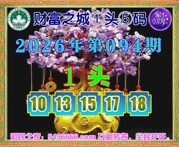 094期: 财富之城 🌲①头⑤码🌲【1头主:10.13.15.17.18】开:17