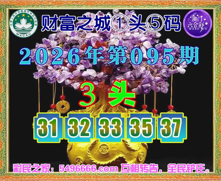 095期: 财富之城 🌲①头⑤码🌲【3头主:31.32.33.35.37】开:35