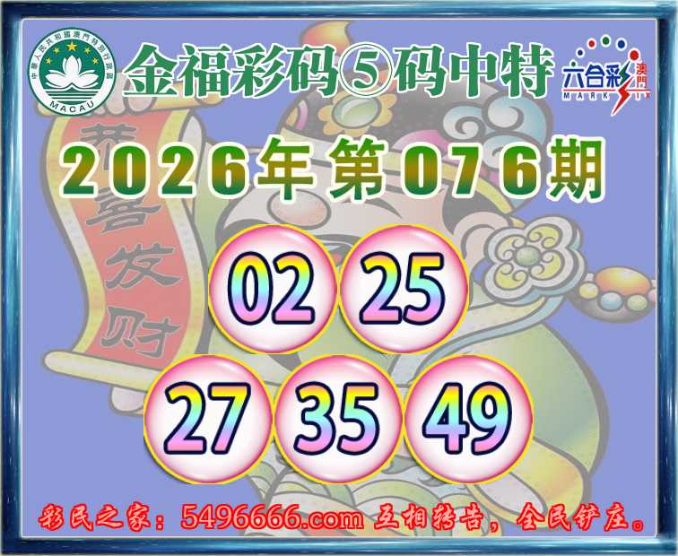 076期:『金福彩码』 🥓⑤码中特🥓【02.25.27.35.49】开:02