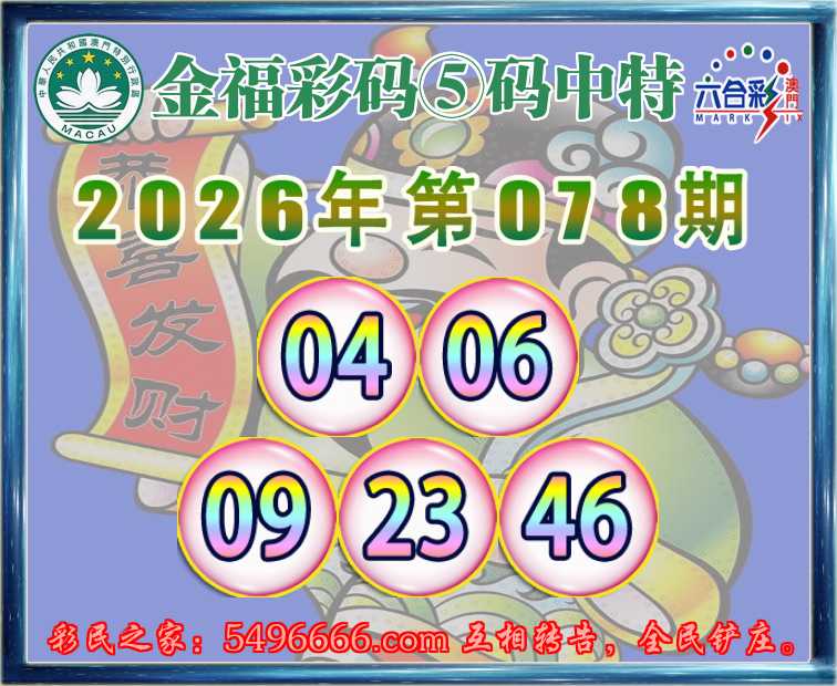 078期:『金福彩码』 🥓⑤码中特🥓【04.06.09.23.46】开:46