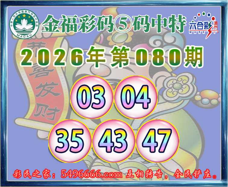 080期:『金福彩码』 🥓⑤码中特🥓【03.04.35.43.47】开:03