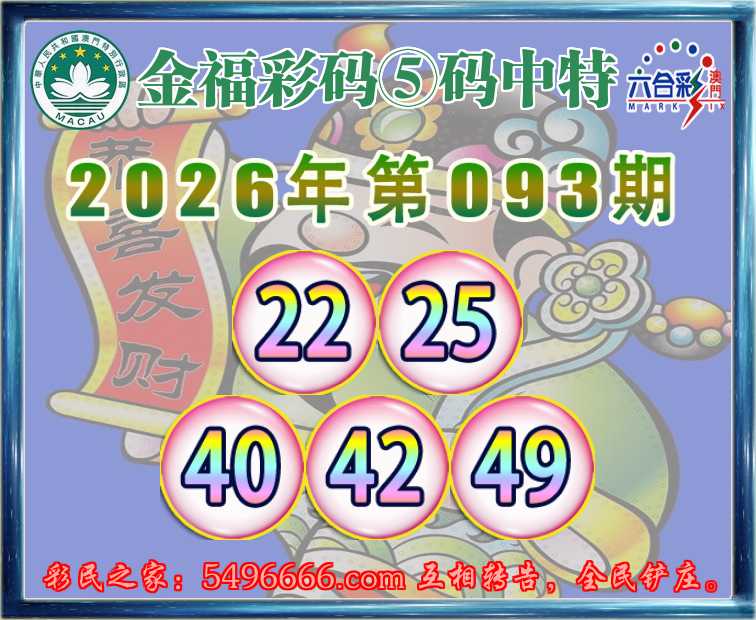 093期:『金福彩码』 🥓⑤码中特🥓【22.25.40.42.49】开:40