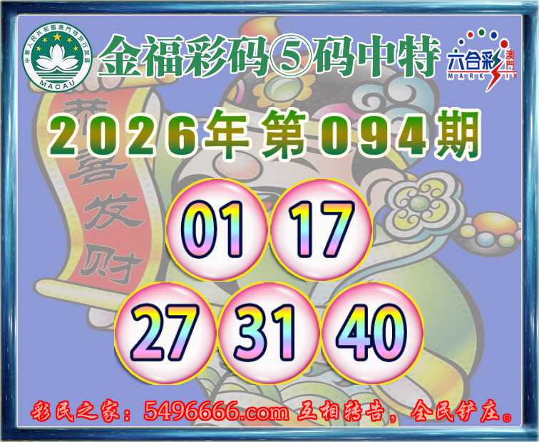 094期:『金福彩码』 🥓⑤码中特🥓【01.17.27.31.40】开:17