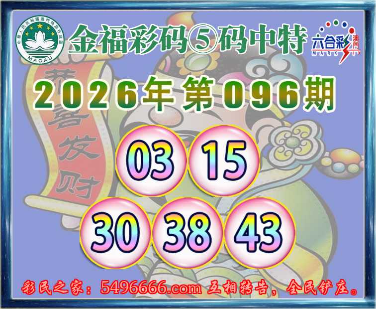 096期:『金福彩码』 🥓⑤码中特🥓【03.15.30.38.43】开:43