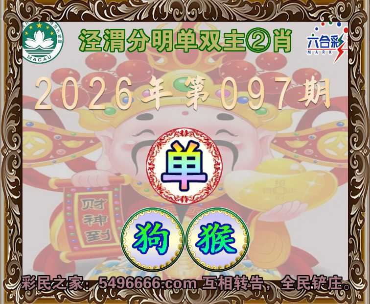 096期:〖泾渭分明〗 🧧单双主②肖🧧【-狗】开:43