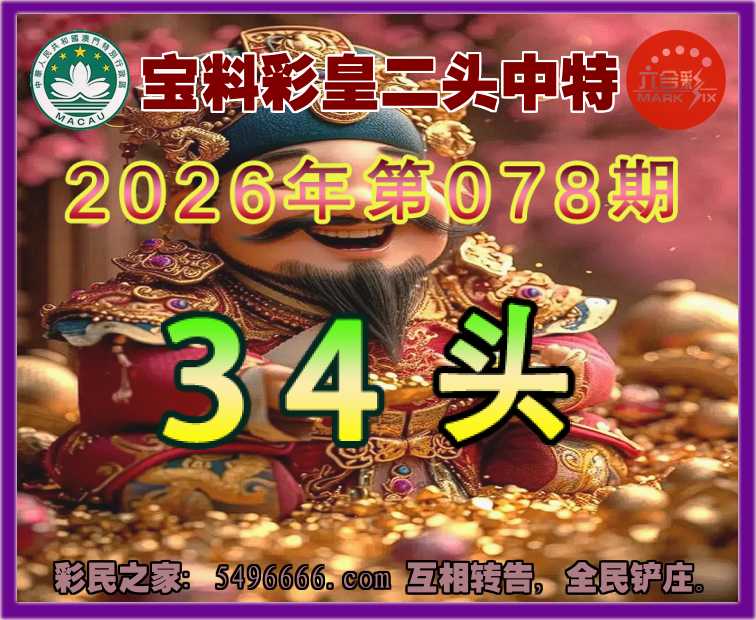 078期: 🚲《宝料彩皇》 🚲二头中特🚲【3.4】开:46
