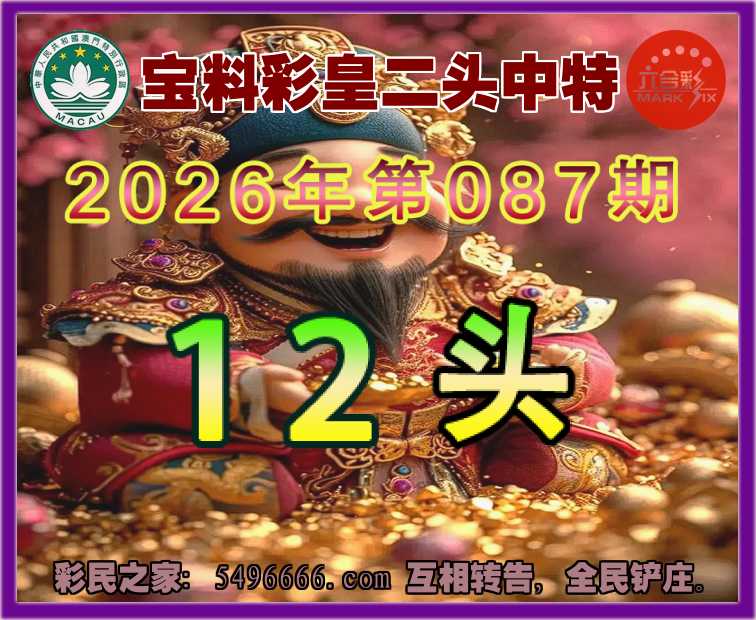 087期: 🚲《宝料彩皇》 🚲二头中特🚲【1.2】开:26