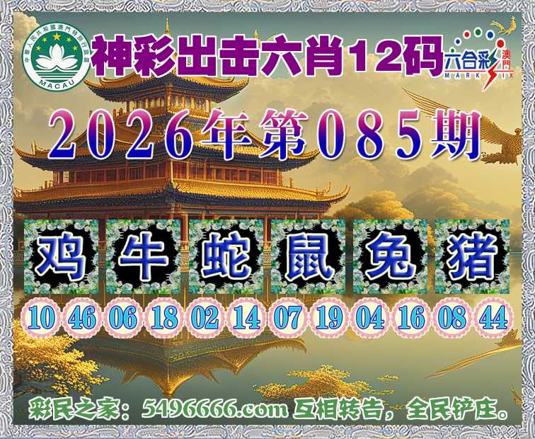 085期:《神彩出击》 🧩六肖12码🧩【鸡牛蛇兔猪】开:鼠19