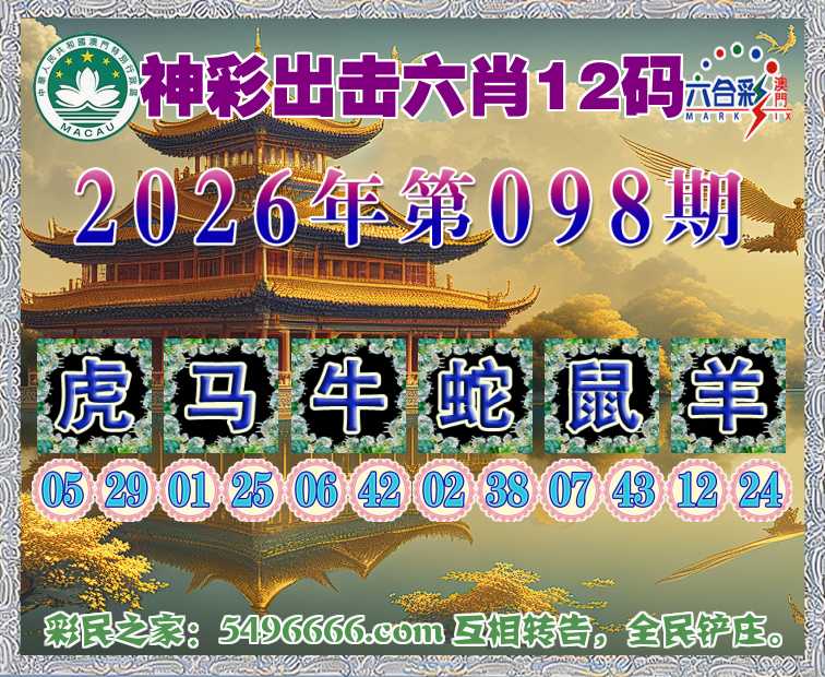 098期:【神彩出击】〓六肖12码〓精准爆料★