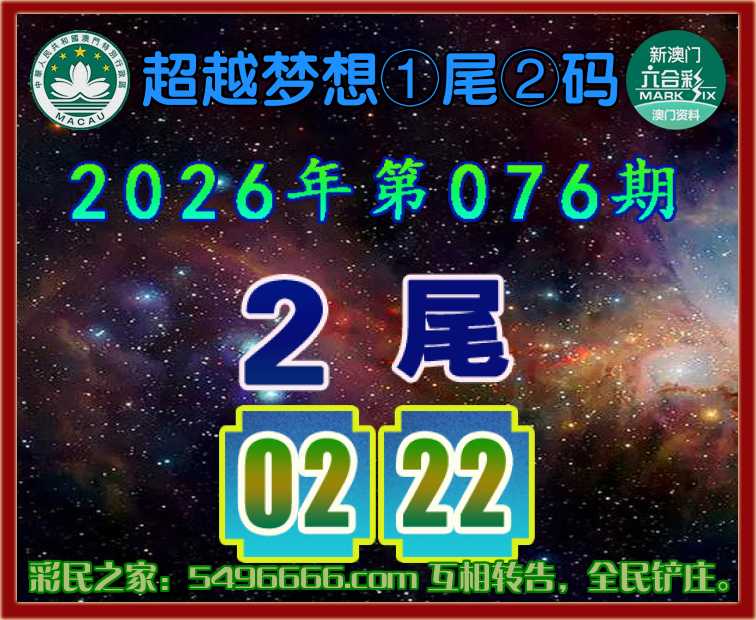 076期:【超越梦想】  ♣️①尾②码 ♣️【2尾主:02.22】开:02