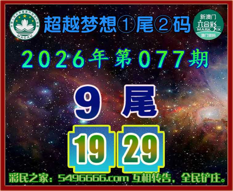 077期:【超越梦想】  ♣️①尾②码 ♣️【9尾主:19.29】开:29