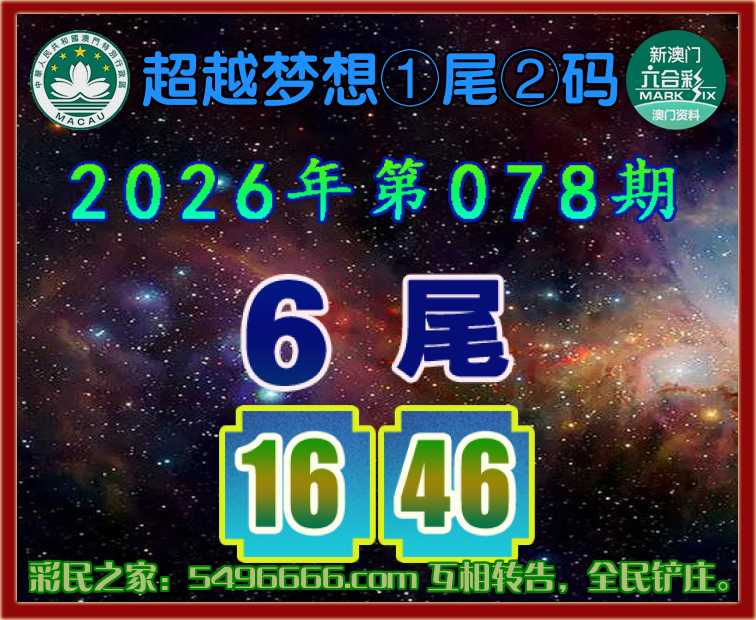 078期:【超越梦想】  ♣️①尾②码 ♣️【6尾主:16.46】开:46