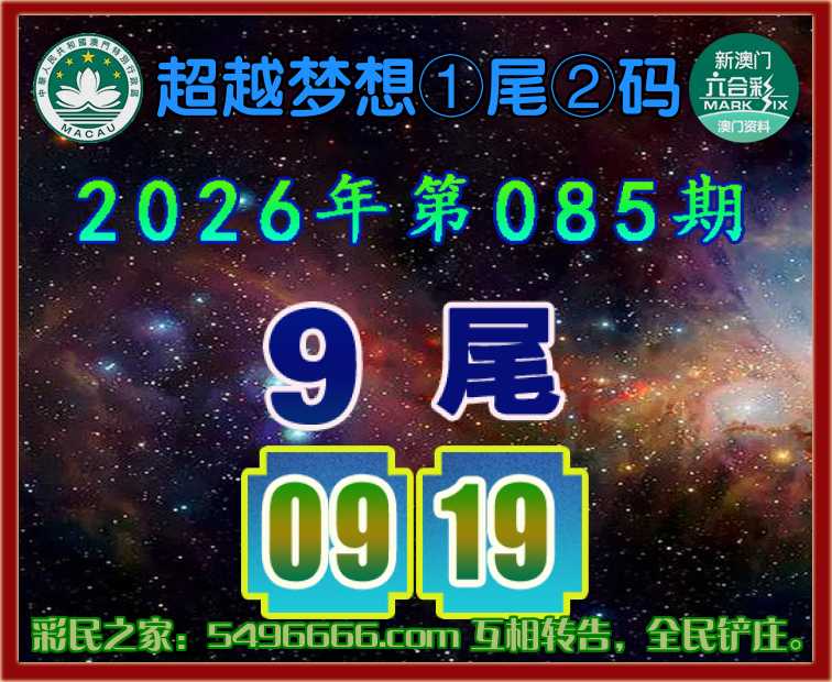 085期:【超越梦想】  ♣️①尾②码 ♣️【9尾主:09.19】开:19