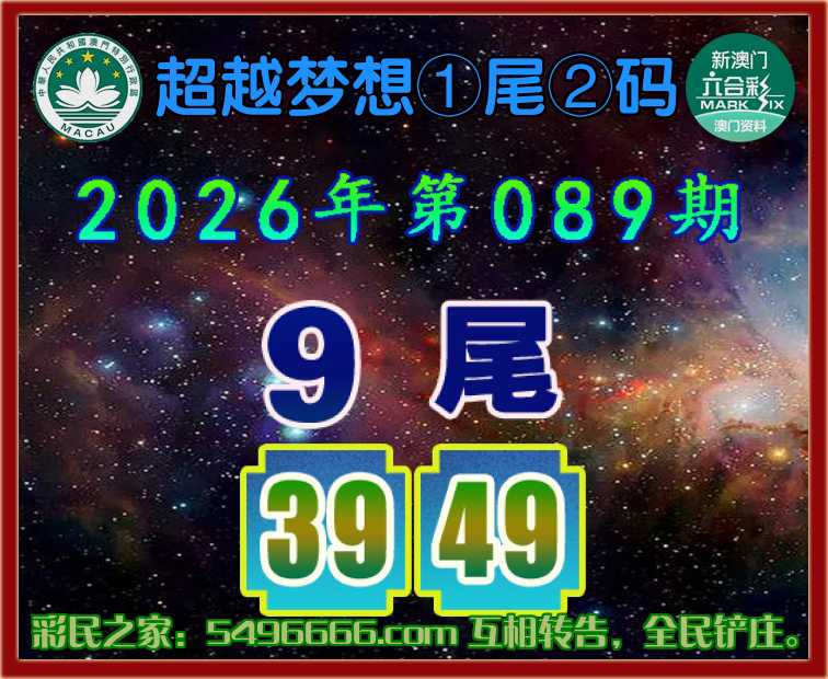 089期:【超越梦想】  ♣️①尾②码 ♣️【9尾主:39.49】开:49