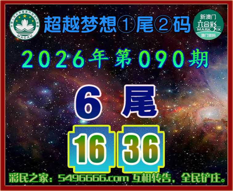 087期:【超越梦想】  ♣️①尾②码 ♣️【6尾主:16.26】开:26