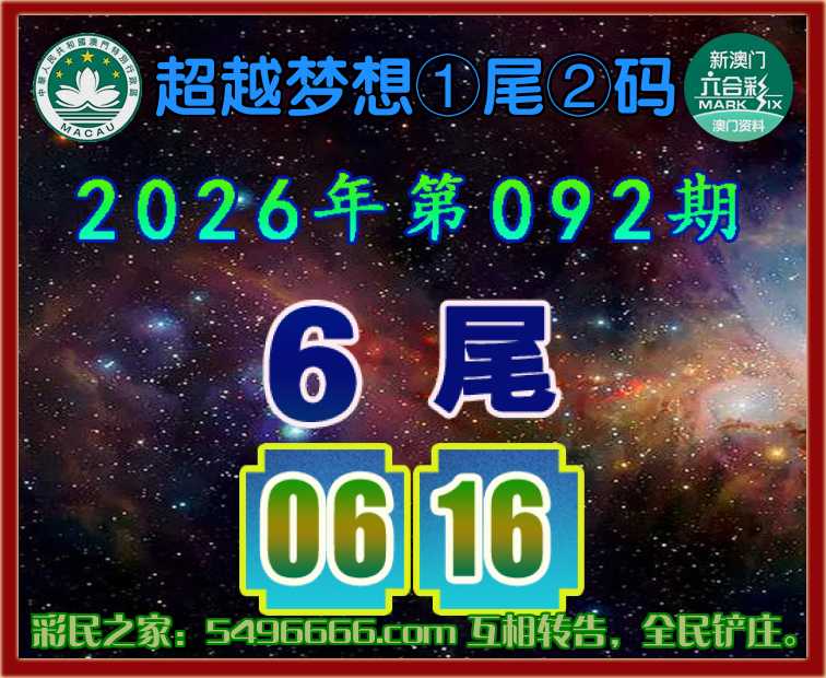 092期:【超越梦想】  ♣️①尾②码 ♣️【6尾主:06.16】开:06