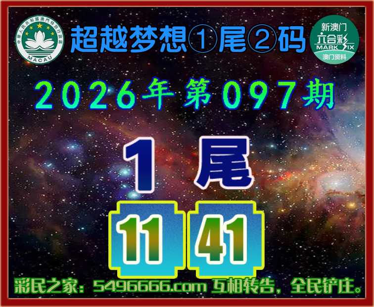 097期:【超越梦想】  ♣️①尾②码 ♣️【1尾主:11.41】开:11