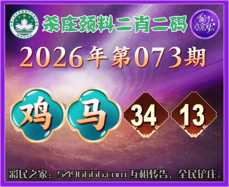 073期:《杀庄颈料》 🎉二肖二码🎉【马】【34.13】开:鸡34