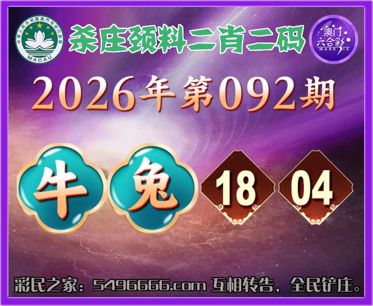 092期:《杀庄颈料》 🎉二肖二码🎉【兔】【18.04】开:牛06