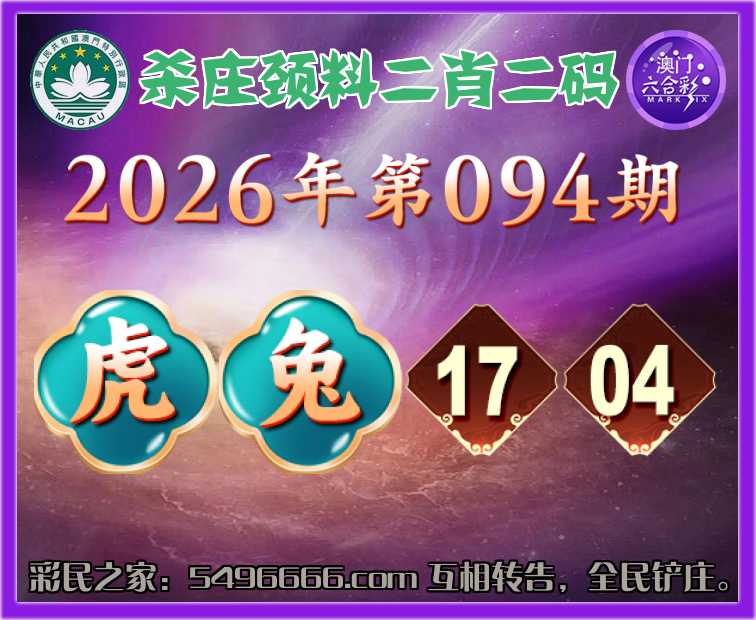 094期:《杀庄颈料》 🎉二肖二码🎉【兔】【17.04】开:虎17