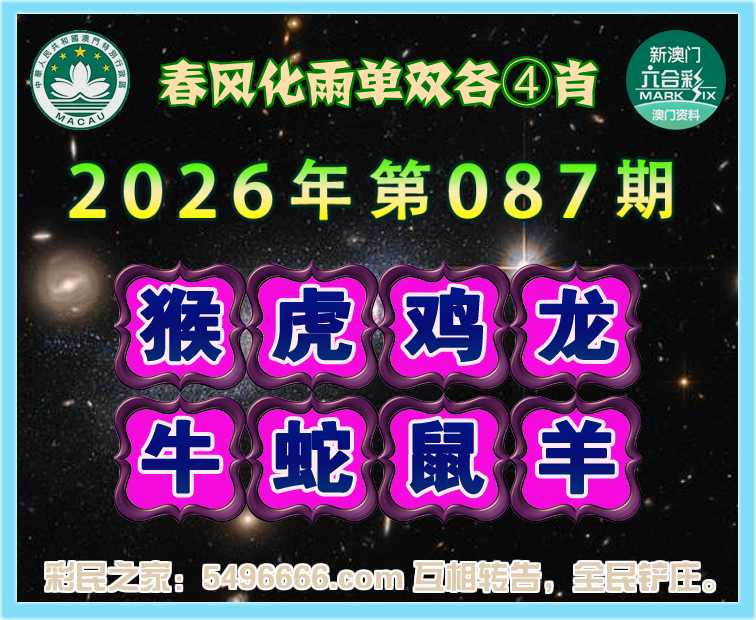 087期:〖春风化雨〗 🍀单双各④肖🍀开:蛇26
