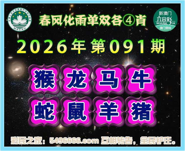 091期:〖春风化雨〗 🍀单双各④肖🍀开:马37