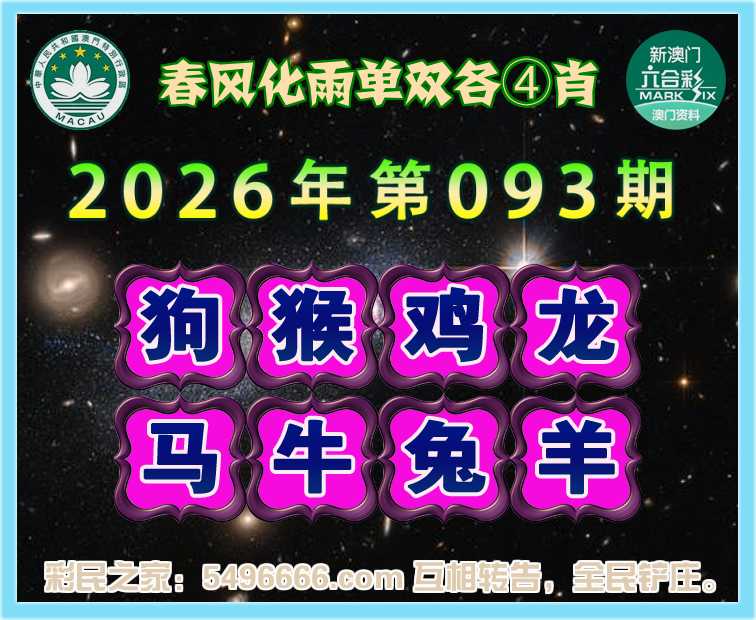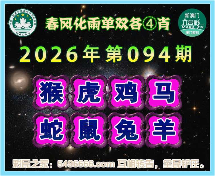 094期:〖春风化雨〗 🍀单双各④肖🍀开:虎17