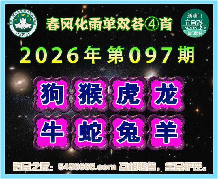 097期:〖春风化雨〗 🍀单双各④肖🍀开:猴11准实力见证