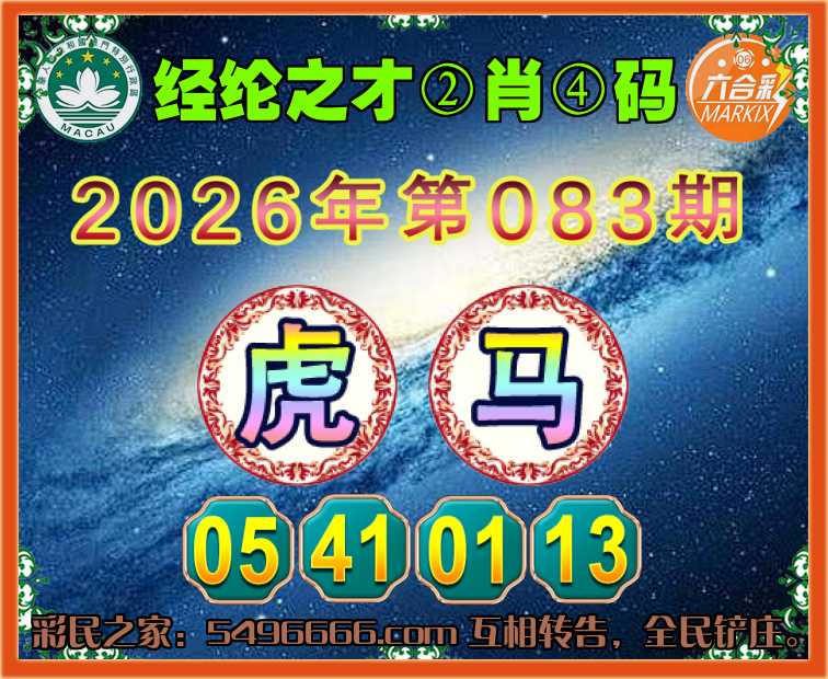 083期: 🧩《经纶之才》 🧩②肖④码🧩【马】【05.41.01.13】开:虎05
