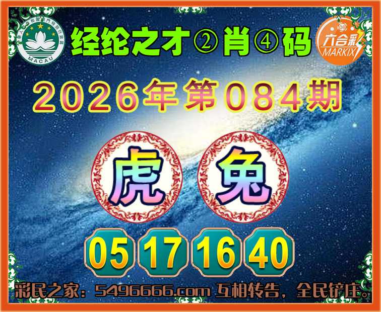 084期: 🧩《经纶之才》 🧩②肖④码🧩【虎】【05.17.16.40】开:兔16