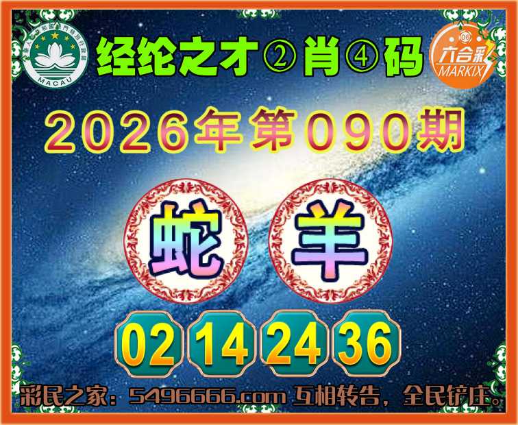 090期: 🧩《经纶之才》 🧩②肖④码🧩【蛇】【02.14.24.36】开:羊36